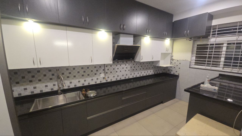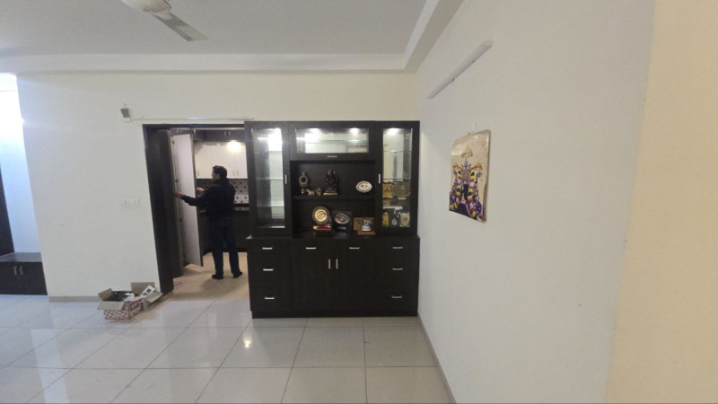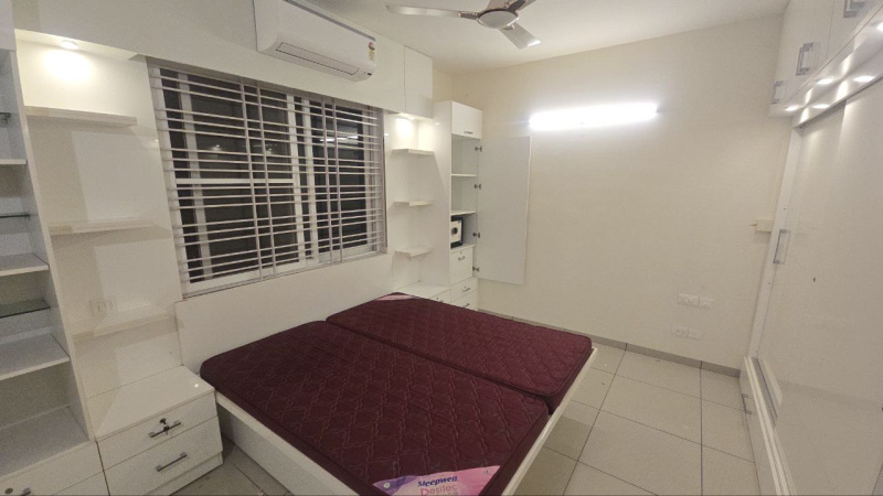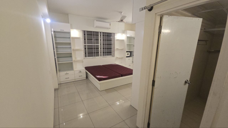 3 BHK measuring about 1725 sq ft, mostly furnished flat with excellent interiors, north facing mn door, the flt is furnished with good furniture, wardobes, lightings, beds, dining table sofas, AC in all the places, one balcony and 2 car parks